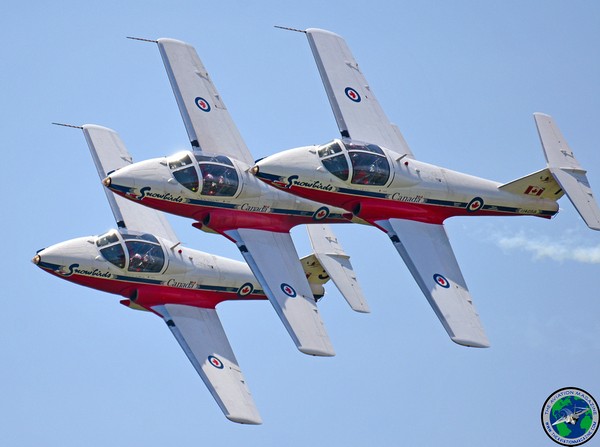 | Several RCAF aircraft were invited for static display, but only the CF-18 and a CH-146 Griffon showed up, the CP-140 Aurora long-range patrol aircraft which was to arrive on Friday canceled at the last minute. Thus the static displays were a bit sparse, unlike in previous years full of Canadian and American warbirds. A CC-130 Hercules did fly in for a short SAR display, dropping two SAR rescue personnel by parachute and then landing to pick them up, and left. Four Harvards from Canadian Harvard Aircraft Associations, located nearby Tillsonburg, performed next led by Bill "Shep" Shepard. One of the Harvards developed a mechanical issue and had to land shortly, but the three other Harvards continued in an impressive three ship formation. Other historical trainer aircraft that flew were; the 1941 Sterman Model 75 "Kaydet", and the de Havilland Canada DHC-1 Chipmunk; The Chipmunk is a tandem, two-seat, single engined primary trainer aircraft which was the standard primary trainer for the Royal Canadian Air Force, Royal Air Force and several other air forces throughout much of the post-second World War years. Both of these were from the CH2A Canadian Historical Aircraft Association located in Windsor, Ontario; and lastly, the Fleet Finch biplane that was manufactured in Fort Erie, Ontario. |