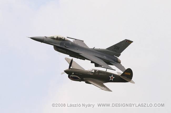 The highlight of the show was the Heritage Flight of the P-40E Warhawk with the F-16 Figthing Falcon. |