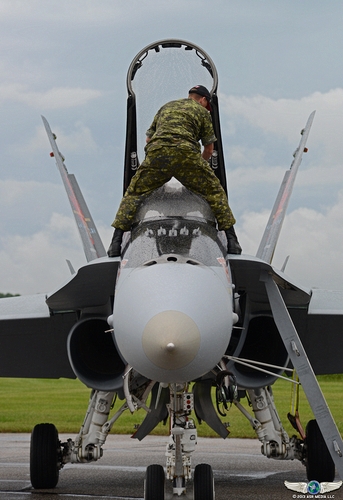 The weather was far from the greatest on Media day and the Hour of Power was a bit delayed, in fact it rained on or off all day. The Hour of Power started by welcoming speeches from dignitaries and the presentation of colours by Veterans and Air Cadets. The flying started with Sean D. Tucker and his Oracle Challenger III, with an incredible teaser performance for the weekend. Sean Tucker is a flying icon at air shows, a world class aerobatic pilot, and a perfect gentlemen. The B-17 performed as well however, the CF-18 could not; it was rumoured there were some technical issues. Since there was only one CF-18 without the usual second CF-18B as backup in case of issues, everybody hoped that for whatever reason it did not fly would be resolved for Saturday's and Sunday's show. It was. |