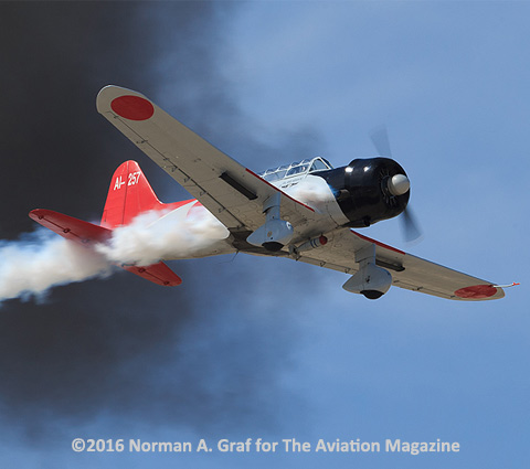 This year marks the 75th anniversary of the attack on Pearl Harbor. No one recreates this event better than the Commemorative Air Force's Tora! Tora Tora! re-enactment team. Flying the aircraft originally modified for the 1970 movie, they put on an incredibly well-choreographed aerial ballet interwoven with extensive pyrotechnic displays on the ground. The smoke from the explosions and resulting grass fires often conceal the aircraft, adding to the realism, but making photography challenging. That and the fact that aircraft are coming from left and right, high up and down on the deck, all at the same time. It's an incredible display and one not to be missed, especially this year. |